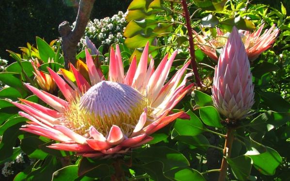 | 特徵 | 帝王花 (Protea, esp. P. cynaroides) | 針墊花/煙火帝王花 (Leucospermum) | 木百合/帝王葉 (Leucadendron) | 班克木 (Banksia) |