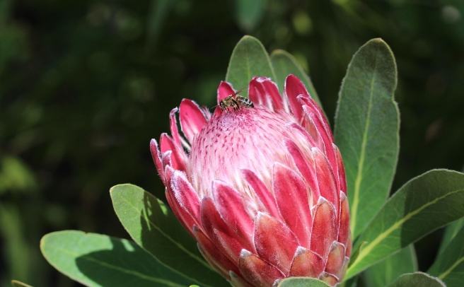 - 獨特結構: 我們看到的「花瓣」,其實主要是色彩鮮豔、層層疊疊的苞片。這些苞片質地厚實,帶著一種蠟質或皮革般的光澤感,保護著裡面真正的、細小的花朵。這些小花聚集在中央,有時候會形成一個絨毛狀的花心,增添了層次和趣味性。整個花序像一個精心設計的藝術品,難怪英文俗名叫 King Protea。